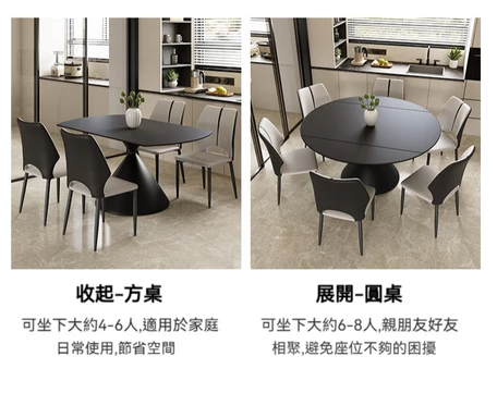 餐桌可變圓桌 現代簡約家用小戶型方圓兩用旋轉伸縮圓餐桌